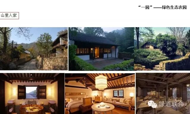 3、山里人家——對現有村莊進行統一規劃,打造品質鄉村度假,可以進行統一經營,也可讓居民自行經營。