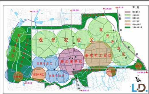 “五區(qū)”:核心服務區(qū):廊下鎮(zhèn)區(qū);創(chuàng)意農業(yè)區(qū):科學農業(yè)示范區(qū),包括無農藥蔬菜基地、現代種子 種苗基地、玉環(huán)靈芝配置基地等;