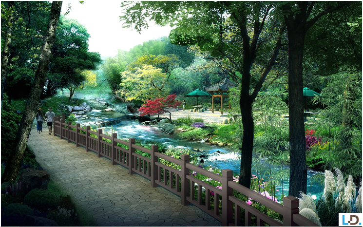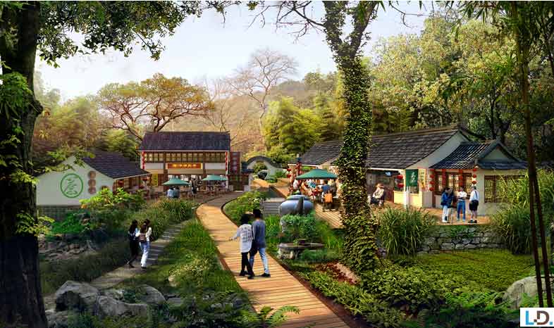 入口服務(wù)區(qū):設(shè)置游客服務(wù)中心、度假酒店、停車場以及相應(yīng)公共服務(wù)設(shè)施,打造龍津溪地的門戶形象。
