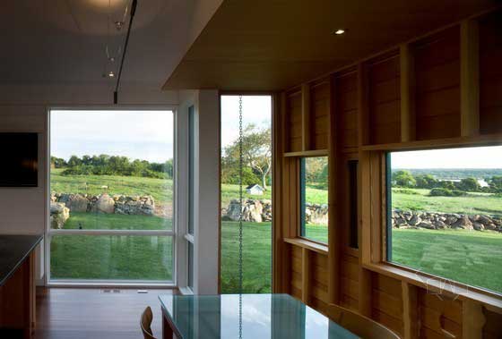 這個家庭農場坐落在羅德島南海岸,橫跨整個半島的山脊線同時面對著大西洋。它安置于薩康尼特河景觀當中并被水域所劃分開,這里有著森林,池塘以及草原。整個農場被安靜地嵌入在了一個非常祥和的土地上,同時為瀕臨滅絕的濱鳥,沿海植物以及其它野生動植物保留了關鍵性的棲息處。整個項目規劃采用了已建有的街道以及墻面來作為框架結構,三棟建筑物同時融合在這片沿海領域,從而創造出了一種清晰的景觀建筑并且發揚了這個半島的醉人之美。
