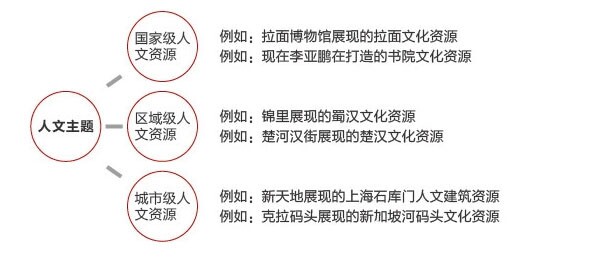 依托于人文資源的不同,發(fā)展出不同的人文主題方向:歷史民俗、人文建筑、人文服飾、人文飲食、文學(xué)或教育、宗教文化等等。本次研究主要通過案例分析,說明歷史民俗、人文建筑、人文飲食三個(gè)方向的人文旅游主題商業(yè)的操作方法和實(shí)現(xiàn)前提。