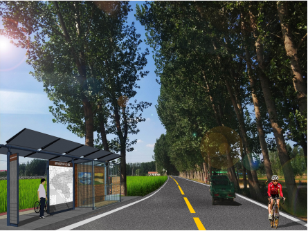 農(nóng)村公交站點設置:設置間距為1km,如與村口、道口可考慮實時縮短或增加距離 ;車站滿足候車功能同時可融合互聯(lián)網(wǎng)+的相關服務信息,例如二維碼查詢車次運營情況及篩選去周邊區(qū)域車次。